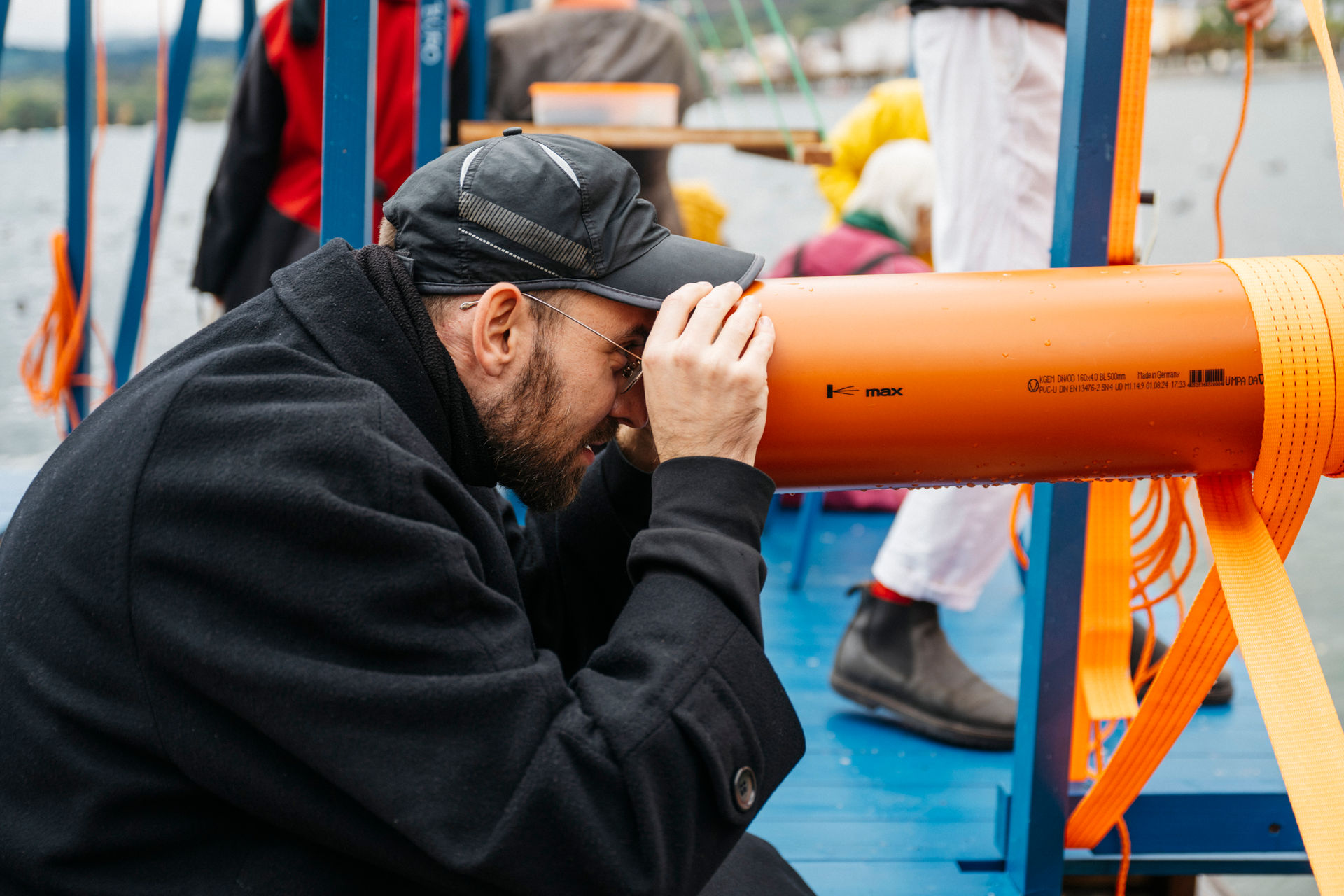 Das Seeamt formuliert die Frage „Wem gehört der See?“ neu. Denn auf dem Wasser verschwimmen territoriale Grenzen. Das ständige verhandeln verschiedener Aneignungen von Raum wird deshalb zu unserem künstlerischen Forschungsgegenstand. Wie öffnet der See die Möglichkeit, Besitzverhältnisse und Eigentum fluid zu denken? „Wer ist der See?“.
