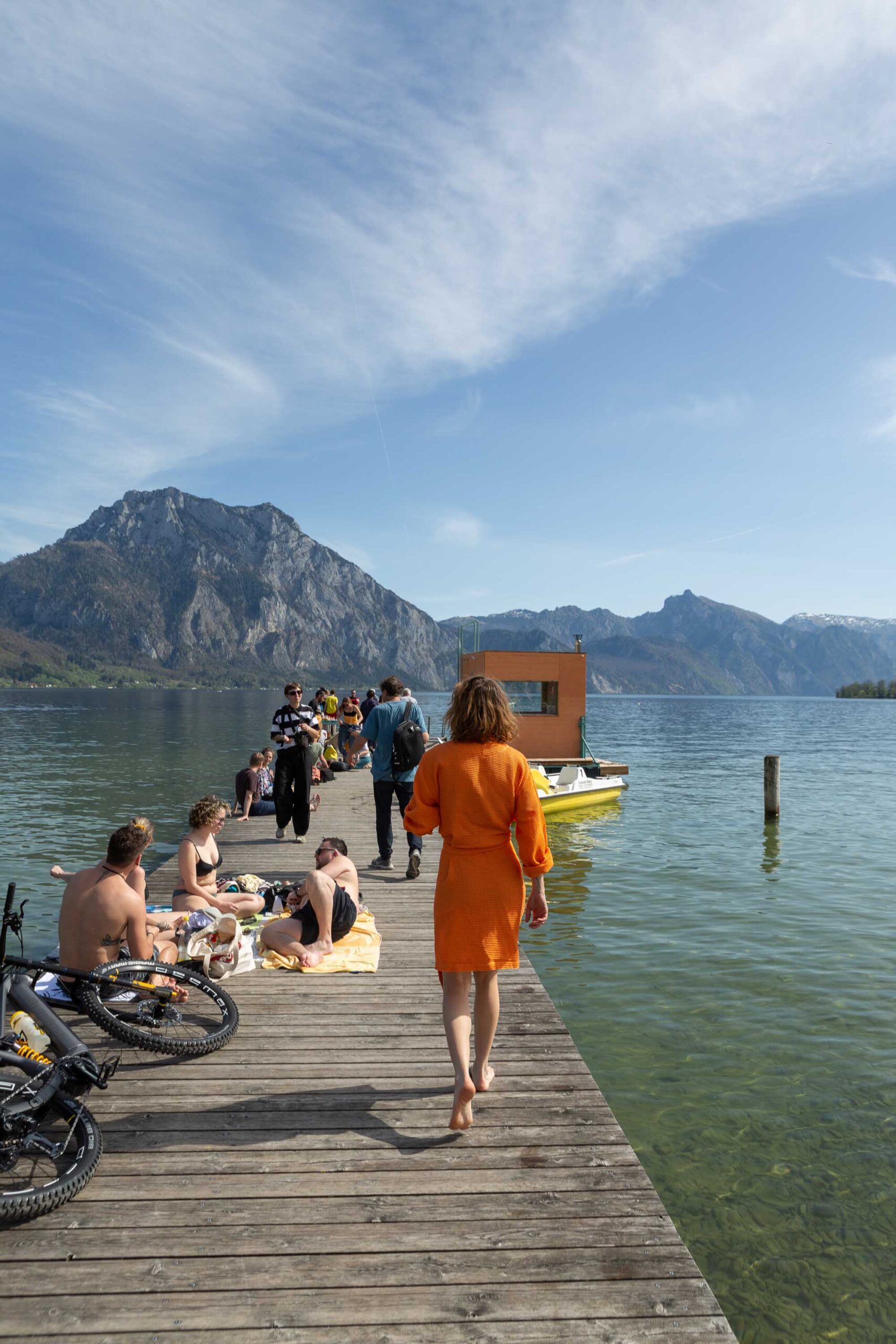 Frühling ist, die Baumärkte haben Hochkonjunktur und alles rüstet sich für die Sommersaison im Salzkammergut. Einfamilienhäuser werden herausgeputzt, Hotels bauen aus, Gastgärten wachsen und Thujenhecken beginnen sich rund um Privates zu formieren. Das Team von Plateau Blo lud am 07. April zum ersten Saunatalk am See ein, um über die Baukultur zu sprechen. Was ist denn eigentlich Baukultur? Wer soll, kann oder will denn wie bauen rund um die Seen? Gibt es gute und schlechte Baukultur? Sollte gar nicht mehr neu gebaut werden, und wenn doch, wie? Oder schauen wir erst einmal, was so alles an Bestand da ist, besetzen diesen, nutzen um und bespielen ihn temporär? Geht es vielleicht mehr um Kultur, als um das Bauen? Können Kunst und Kultur temporär mehr verändern in Richtung Baukultur, als es das langwierige und aufwändige Bauen kann?